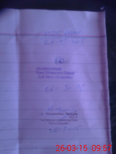 | School Visited by School Health & Nutrition Supervisor (No. of Visits) | 1 | Name1: | NASRA PARVEEN | Name2: | |