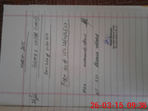 | Monitoring Date: 26-03-2015 | Start Time: 26-03-2015 08:46 AM | End Time: 26-03-2015 09:38 AM | Name of MEA: Mu**** Am**** BN**** 04 | |