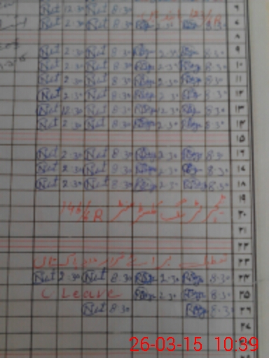 | CNIC | Full Name | Designation | R/C | Absence During Last Calender Month |