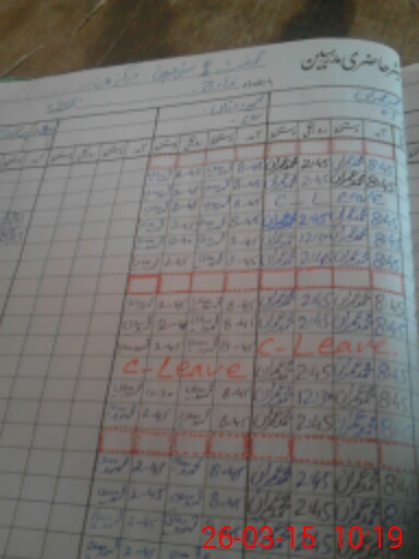 | CNIC | Full Name | Designation | R/C | Absence During Last Calender Month |