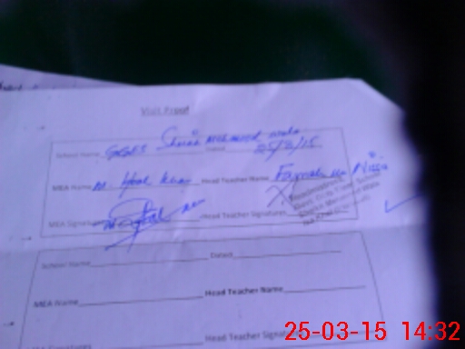 | Attendance Register | Head Teacher | MEA with School | Visit Proof |