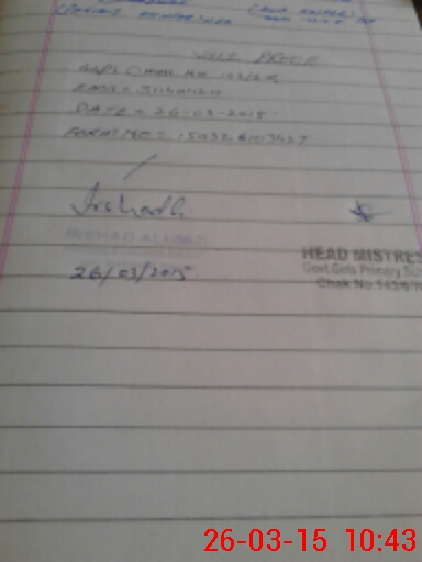 | Name: SA**** TA**** Designation: (School Headmaster's/Headmistress's) PST Phone/Cell Number: 03**** |