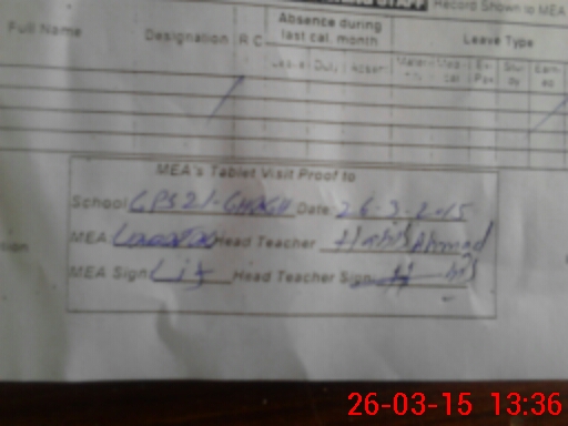 | Attendance Register | Head Teacher | MEA with School | Visit Proof |