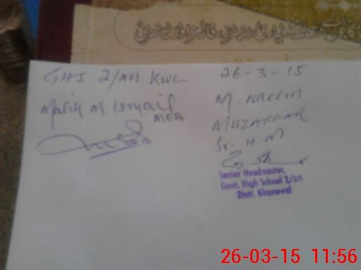 | Name: Gh**** Mu**** Sa**** Designation: (School Headmaster's/Headmistress's) SHM Phone/Cell Number: 03**** |