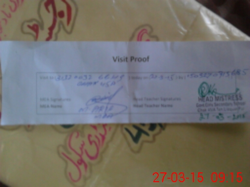 | Attendance Register | Head Teacher | MEA with School | Visit Proof |