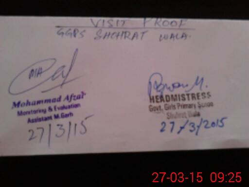 | EMIS Code: 32320559 | Name of School: GGPS SHOHRAT WALA | |||