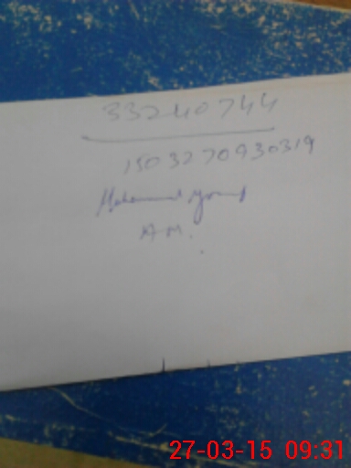 | Monitoring Date: 27-03-2015 | Start Time: 27-03-2015 09:13 AM | End Time: 27-03-2015 09:35 AM | Name of MEA: S-**** JA**** MO**** (R**** 12**** | |