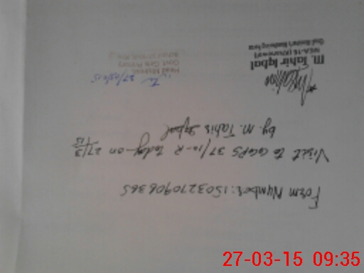 | Monitoring Date: 27-03-2015 | Start Time: 27-03-2015 09:06 AM | End Time: 27-03-2015 09:42 AM | Name of MEA: M.Ta**** Iq**** (S**** | |