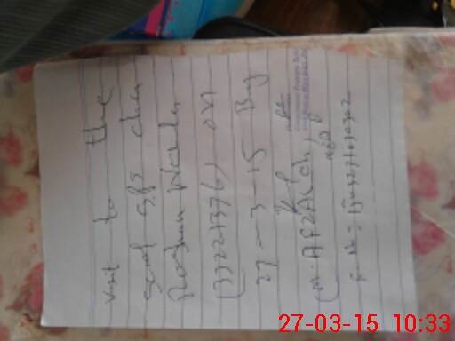 | Monitoring Date: 27-03-2015 | Start Time: 27-03-2015 10:20 AM | End Time: 27-03-2015 10:34 AM | Name of MEA: J-**** CH**** MO**** AF**** | |