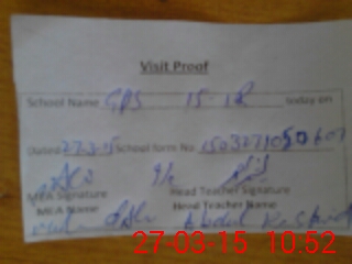 | Attendance Register | Head Teacher | MEA with School | Visit Proof |