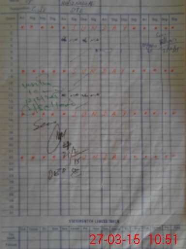 | Monitoring Date: 27-03-2015 | Start Time: 27-03-2015 10:32 AM | End Time: 27-03-2015 10:57 AM | Name of MEA: Mu**** Ra**** | |