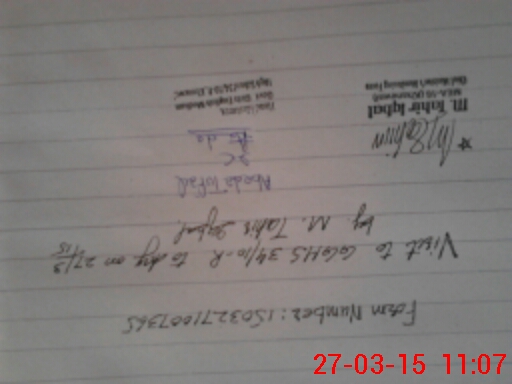 | Monitoring Date: 27-03-2015 | Start Time: 27-03-2015 10:07 AM | End Time: 27-03-2015 11:11 AM | Name of MEA: M.Ta**** Iq**** (S**** | |