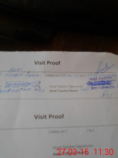 | School Visited by School Health & Nutrition Supervisor (No. of Visits) | 1 | Name1: | M Javed | Name2: | Nil |
