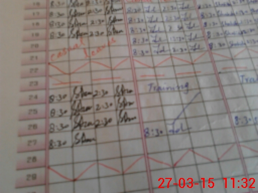 | Monitoring Date: 27-03-2015 | Start Time: 27-03-2015 11:19 AM | End Time: 27-03-2015 11:36 AM | Name of MEA: Z.**** M.Is**** | |
