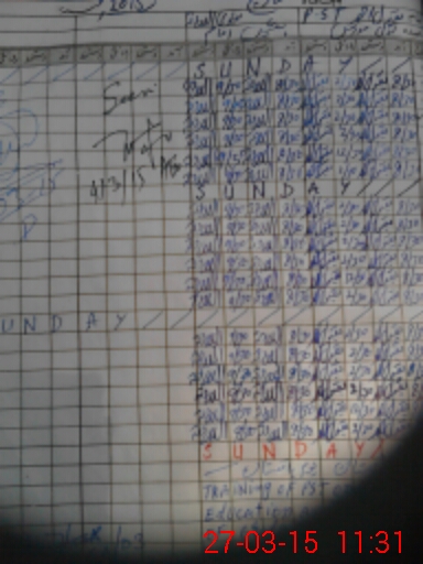 | Monitoring Date: 27-03-2015 | Start Time: 27-03-2015 11:23 AM | End Time: 27-03-2015 11:37 AM | Name of MEA: BA**** HU**** SH**** | |