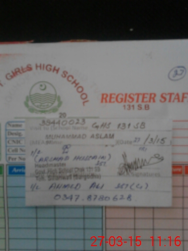 | EMIS Code: 38440023 | Name of School: GHS CHAK NO.131 SB | |||