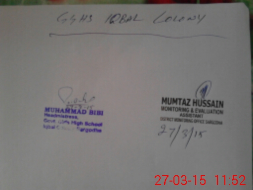 | EMIS Code: 38420222 | Name of School: GGHS IQBAL COLONY SARGODHA | |||