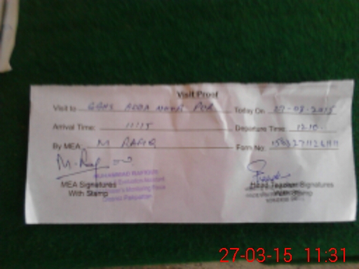 | Attendance Register | Head Teacher | MEA with School | Visit Proof |