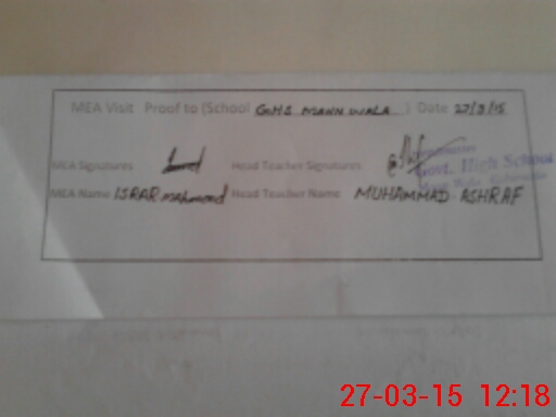 | Attendance Register | Head Teacher | MEA with School | Visit Proof |