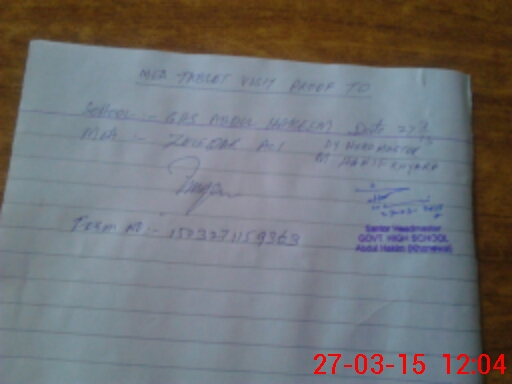 | Attendance Register | Head Teacher | MEA with School | Visit Proof |