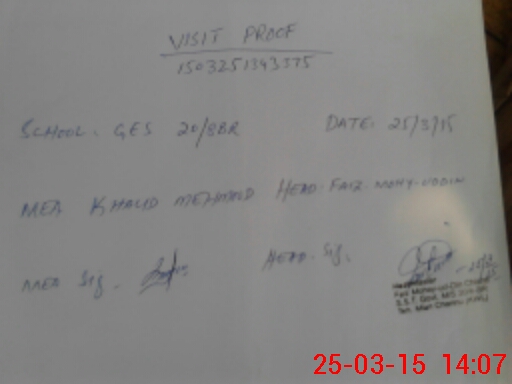 | Attendance Register | Head Teacher | MEA with School | Visit Proof |