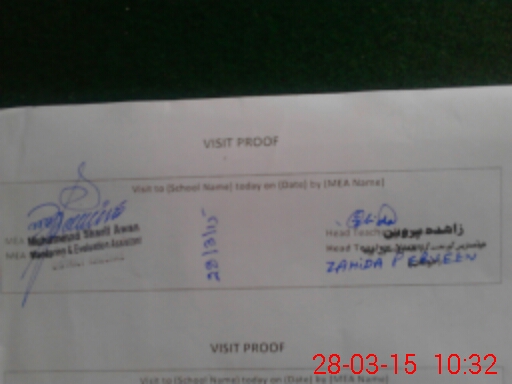| Attendance Register | Head Teacher | MEA with School | Visit Proof |