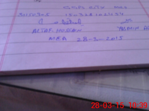 | Monitoring Date: 28-03-2015 | Start Time: 28-03-2015 10:16 AM | End Time: 28-03-2015 10:41 AM | Name of MEA: Al**** Hu**** BN**** | |