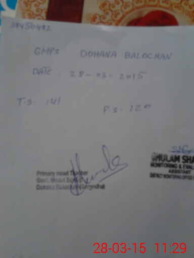 | EMIS Code: 38450492 | Name of School: GMPS DOHANA BALOCHAN | |||