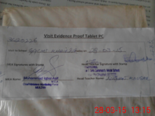 | Attendance Register | Head Teacher | MEA with School | Visit Proof |