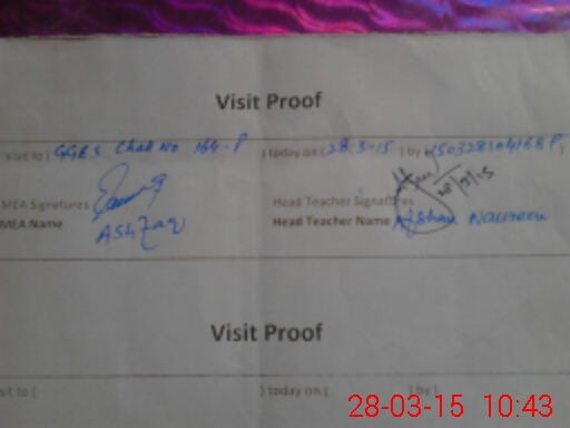| Attendance Register | Head Teacher | MEA with School | Visit Proof |