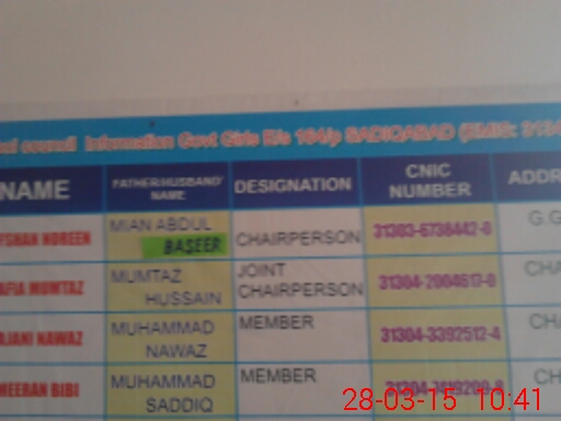 | District: RAHIMYAR KHAN | Tehsil: SADIQABAD | Markaz: ROSHAN BHAIT - FEMALE | Level: Middle | |