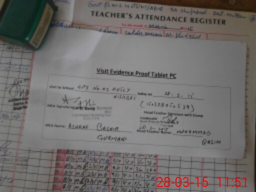 | Attendance Register | Head Teacher | MEA with School | Visit Proof |