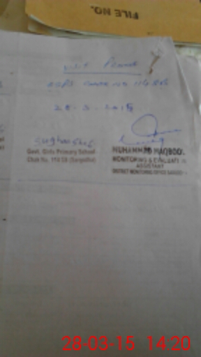 | District: SARGODHA | Tehsil: SARGODHA | Markaz: PULL 111-SB - FEMALE | Level: Primary | |