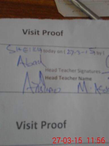 | Attendance Register | Head Teacher | MEA with School | Visit Proof |