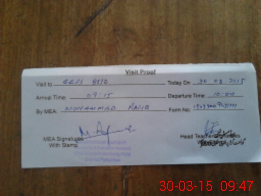 | Attendance Register | Head Teacher | MEA with School | Visit Proof |