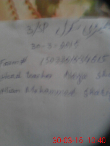 | Name: Za**** Sh**** Designation: (School Headmaster's/Headmistress's) SST ARTS Phone/Cell Number: 03**** |