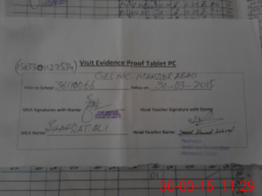 | Attendance Register | Head Teacher | MEA with School | Visit Proof |