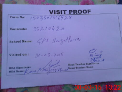 | Attendance Register | Head Teacher | MEA with School | Visit Proof |