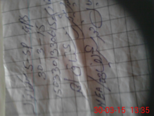| Monitoring Date: 30-03-2015 | Start Time: 30-03-2015 01:24 PM | End Time: 30-03-2015 01:39 PM | Name of MEA: BA**** HU**** SH**** | |