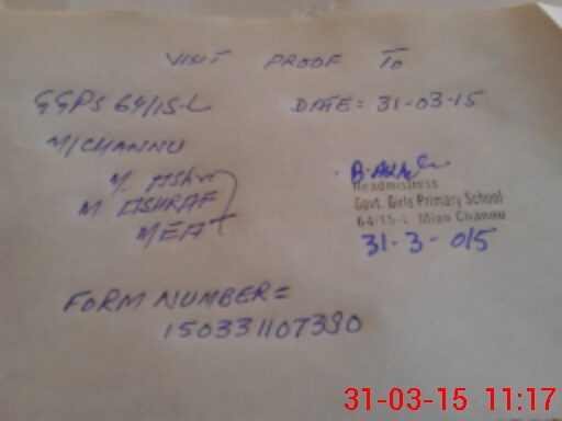 | EMIS Code: 36430285 | Name of School: GGPS 64/15-L MIAN CHANNU | |||