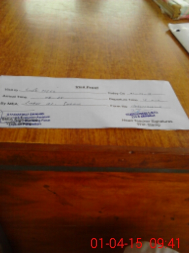| Monitoring Date: 01-04-2015 | Start Time: 01-04-2015 08:26 AM | End Time: 01-04-2015 09:41 AM | Name of MEA: Li**** Al**** Sh**** (R**** | |