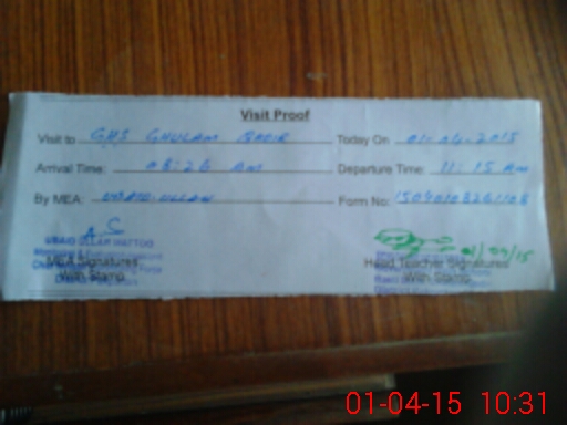 | Attendance Register | Head Teacher | MEA with School | Visit Proof |