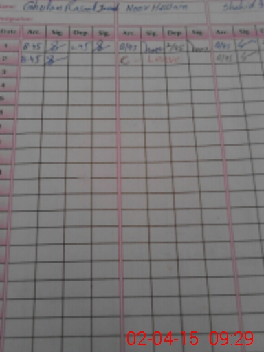 | CNIC | Full Name | Designation | R/C | Absence During Last Calender Month |
