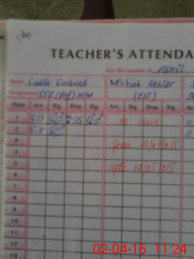| Name: Sy**** Sa**** Fa**** Designation: (School Headmaster's/Headmistress's) EST Phone/Cell Number: 03**** |