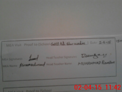 | Attendance Register | Head Teacher | MEA with School | Visit Proof |