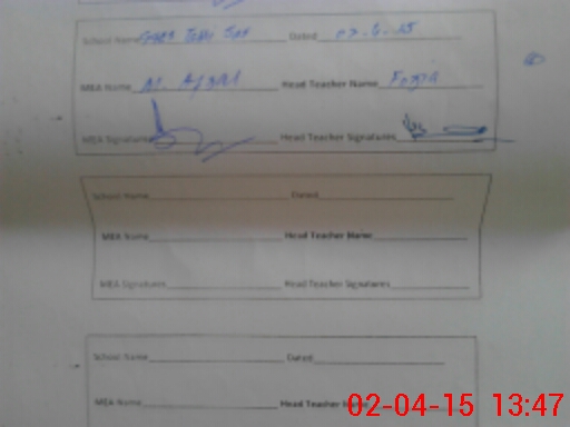 | Attendance Register | Head Teacher | MEA with School | Visit Proof |