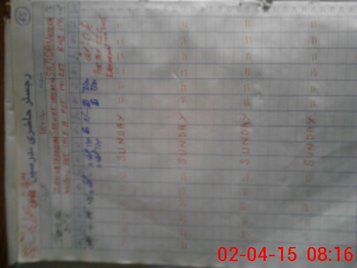 | 31**** | Sa**** Na**** | EST(ENGLISH) | Regular | 0 | 31 | 0 | 0 | 0 | 0 | 0 | 0 | 0 | Exam Duty |