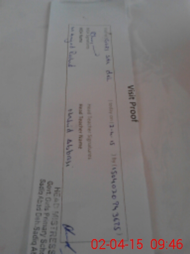 | Attendance Register | Head Teacher | MEA with School | Visit Proof |