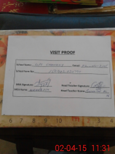 | Attendance Register | Head Teacher | MEA with School | Visit Proof |