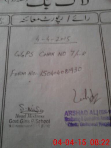 | EMIS Code: 31140353 | Name of School: GGPS CHAK NO. 7/1-R | |||
